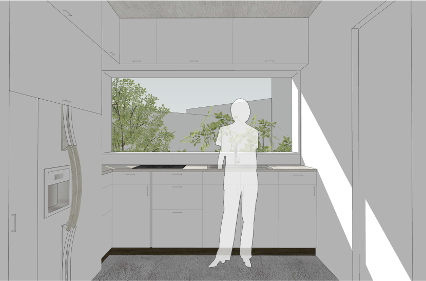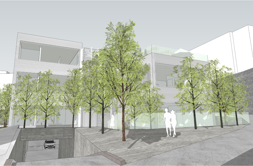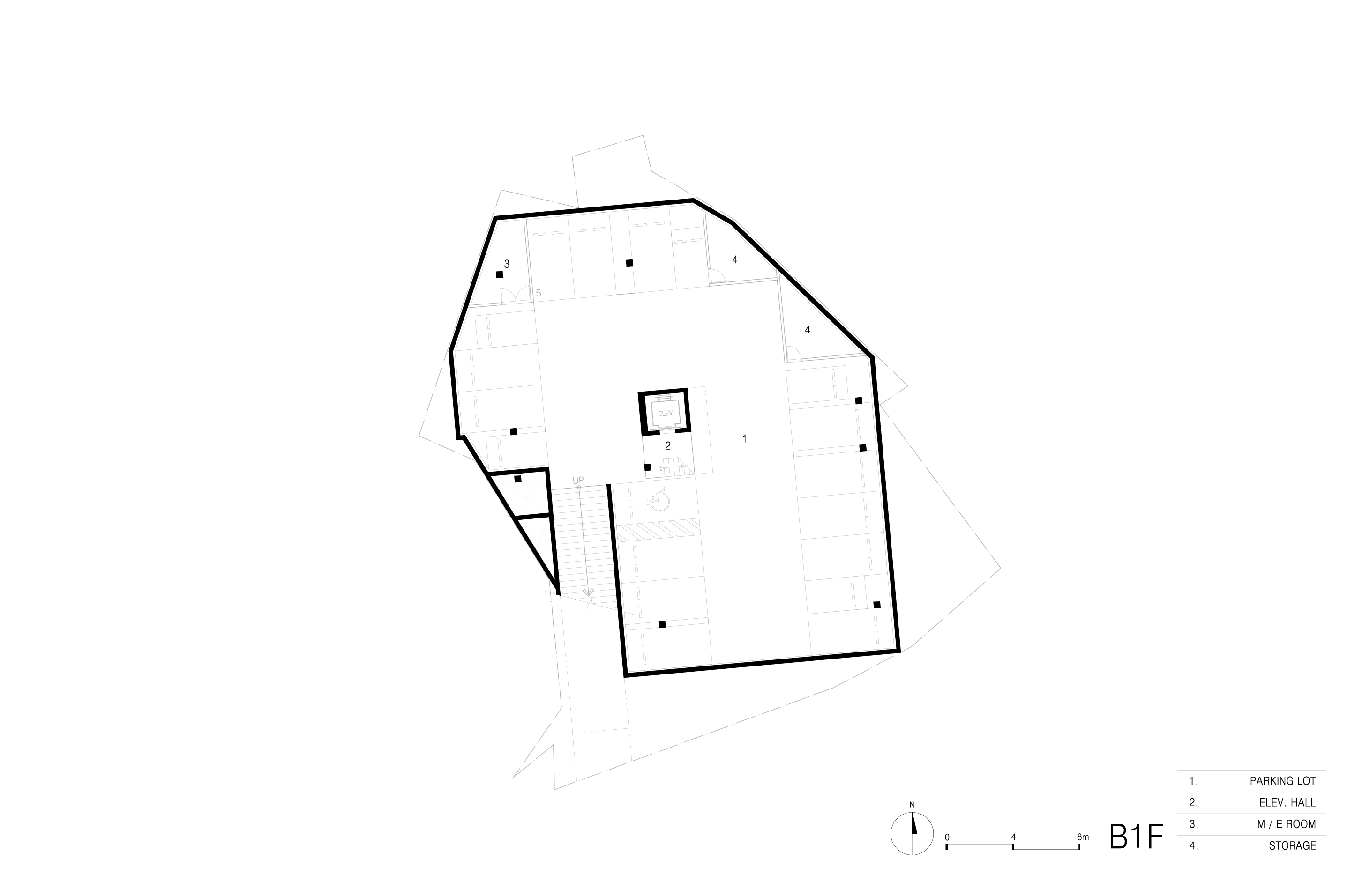 이에 따라 경사 및 이형의 대지를 활용 건물 면마다 외부공간이 면하게 하여 1층 거주민의 활용도를 높이고 2층 이상에서는 식재로 인한 자연현상을 볼 수 있도록 하였다.