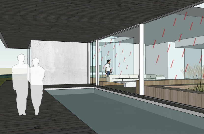 하지만 골프단지 내 위치하며 더욱이 프라이빗이 필요한 주거 환경이기 때문에 외부에 닫혀 있을 수 밖에 없었고 이에 따른 무료함이 발생할 수가 있게 된다. 이에 따라 이 주택은 주택에서 놓치기 쉬운 자연현상 및 삶의 일부를 담으려 하고 있고 외부는 개발로 인한 자연 훼손이 발생하여 원래 상태의 회복을 위한 자연의 섭리를 닮고자 계획하였다.